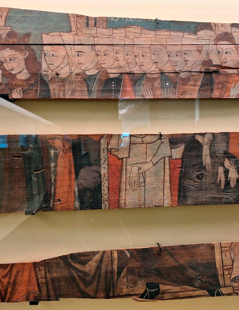 Hasta el próximo 10 de mayo de 2026 puede visitarse en el Museo Arqueológico Nacional (MAN) una breve pero ilustrativa exposición titulada “Lo que la ciudad esconde: Imágenes de la corte medieval de Toledo”. Se trata de un conjunto de más de treinta tablas policromadas que habían permanecido ocultas en un inmueble de Toledo, ubicado junto a la Catedral de la capital castellano-manchega.